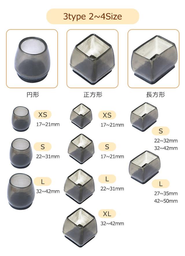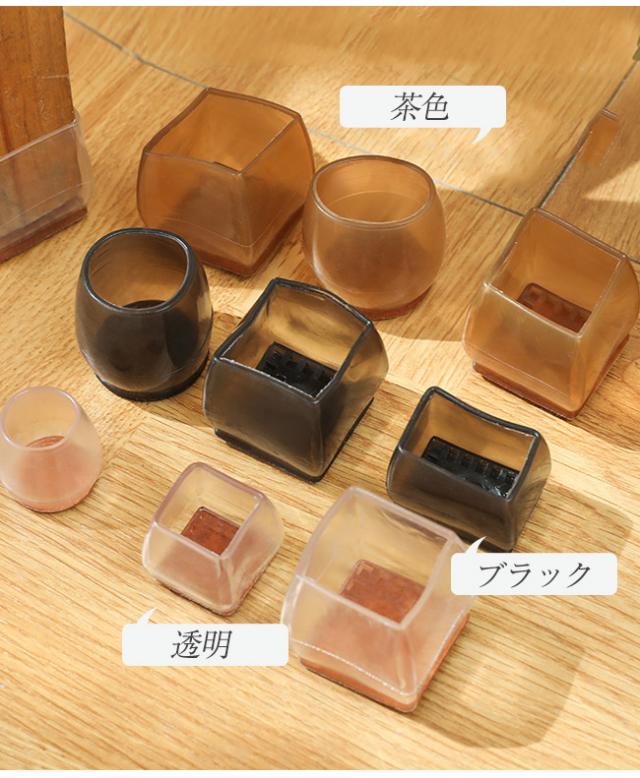 【同色4個セット】椅子脚カバー シリコン イス脚カバー 椅子足カバー 同色4個セット 円形 丸脚 角脚 正方形 長方形 おしゃれ かわいい 脱げにくい 脚キャップ 茶 黒 透明 騒音防止 床保護 傷防止対策