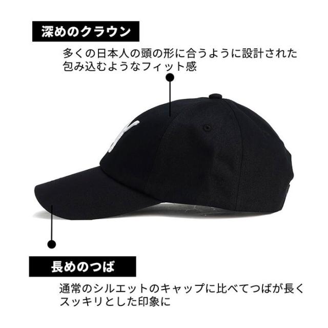 アジアフィットのシルエットで通常のシルエットのキャップに比べ、つばが長く、クラウンが深くなっており、多くの日本人の頭の形に合うように設計されています。