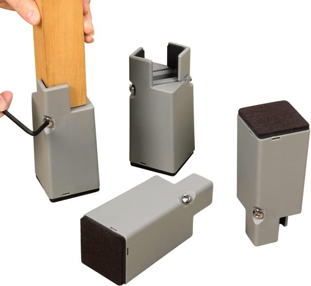 【製品仕様】パッケージ内容:4個セット(高さ10cm)。適用サイズ:脚サイズ2.8~6cm調節可能。色:ブラック。