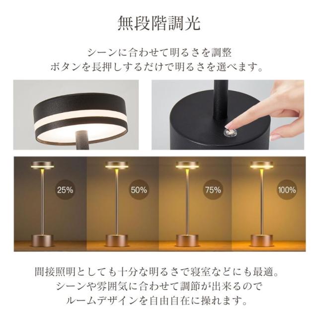 リモコンやスイッチの煩わしさを排除し、タッチ操作一つで簡単に調整ができるこのコードレスランプ。