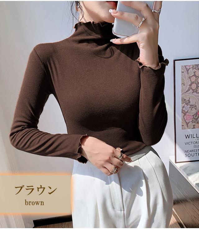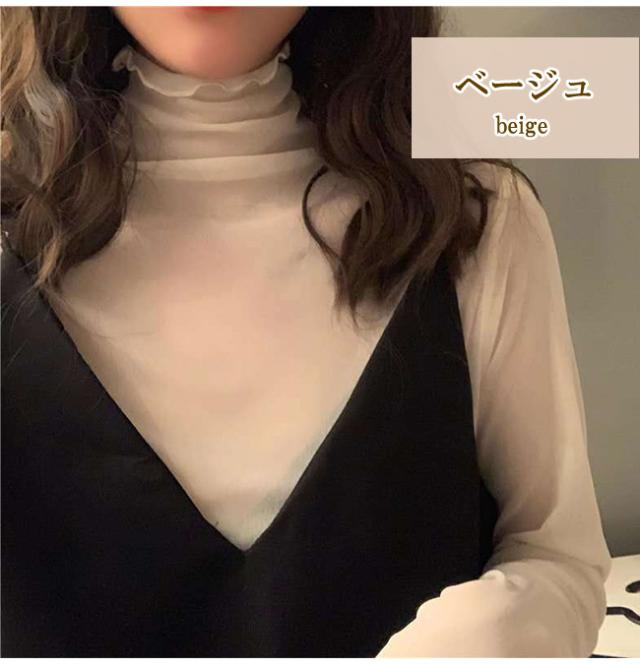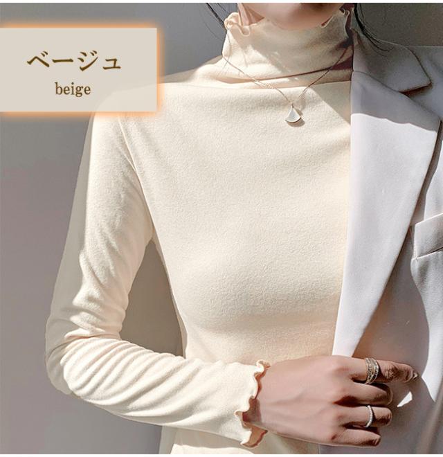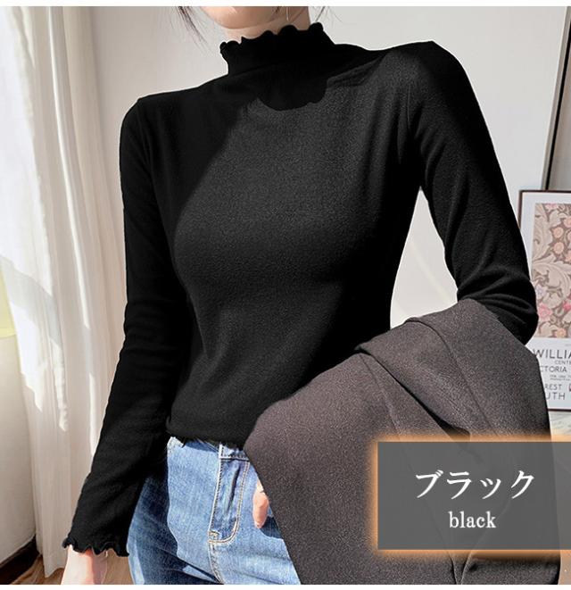 【2点買うと120円オフクーポン】裏起毛 シースルー カットソー インナー 薄手 透け感 重ね着 トップス おしゃれ タートルネック レディース 長袖 厚手 レイヤード コーデ 無地 柔らかい OL 通勤 オフィス フリルネック 着痩せTシャツ 母の日 agesugi_sfa
