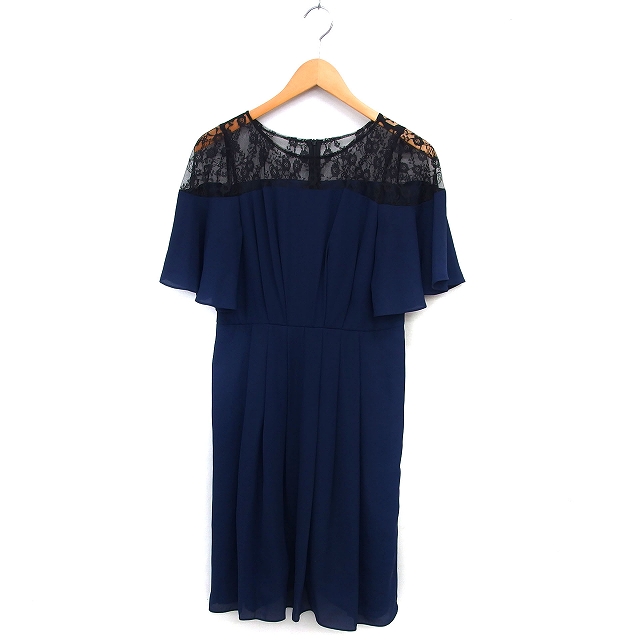【中古】イェッカヴェッカ YECCA VECCA calian フレア ドレス ワンピース レース ひざ丈 タック バックジップ 五分袖