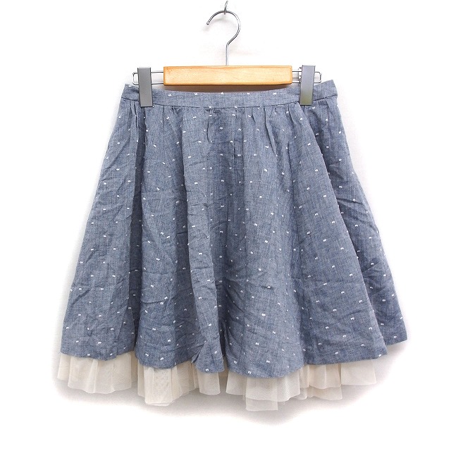 【中古】ボンメルスリー BON MERCERIE 裾チュール フレアスカート ミニ 柄刺繍 綿麻 36 ネイビー 紺 /FT41 レディース