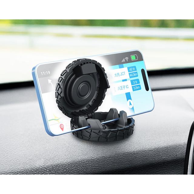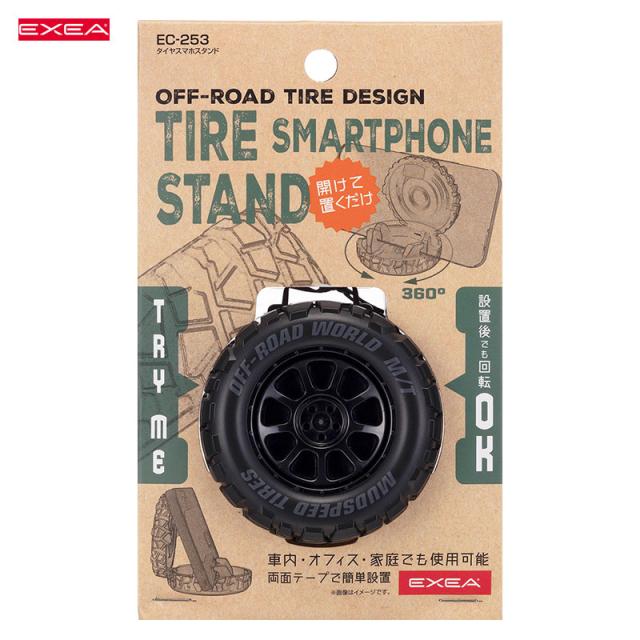 ・オフロード用タイヤデザインの置き型スマホスタンドです。