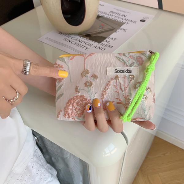 カワイイ-女性のための小さなハンドバッグ,化粧品のためのかわいい花のトラベルバッグ,ウォレットオーガナイザー,カードポケット