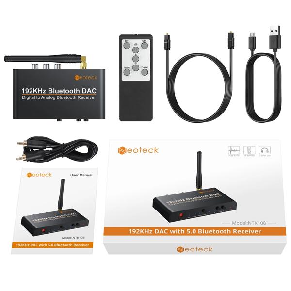 Neoteck-Bluetooth 192Khz互換のコンバーター,ボリュームコントロール,ミュート,電源,リモート制御,オーディオアダプター