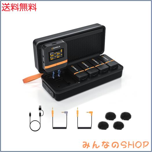 comica Vimo Q 送信機4台+受信機1台 ワイヤレスピンマイク 200m伝送距離、CalMixオーディオ処理、充電ケース付属 動画撮影 オンライン授