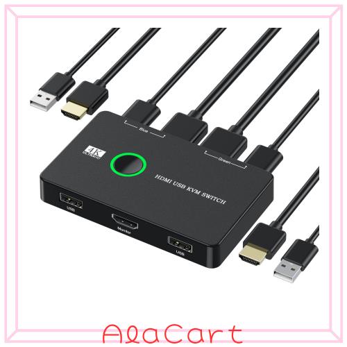 ZARPA 4K KVMスイッチ 2入力1出力 HDMI KVM切替器 PC2台用 プリンタ マウス キーボードなどを共有 usb切替器 4K@60Hz USBケーブル×2 HD