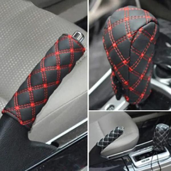 ハンドル用シフトレバー,2個,人工皮革,ハンドブレーキカバー,車内保護ケース,白,赤