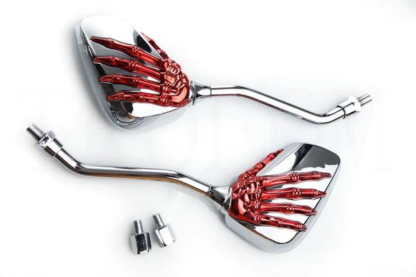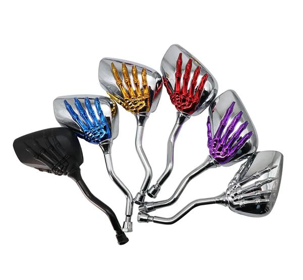 2個ユニバーサルオートバイのバックミラーと8ミリメートル/10ミリメートルネジアルミニウム合金スクータースケルトンスカルハンド修理されたバイクサイド