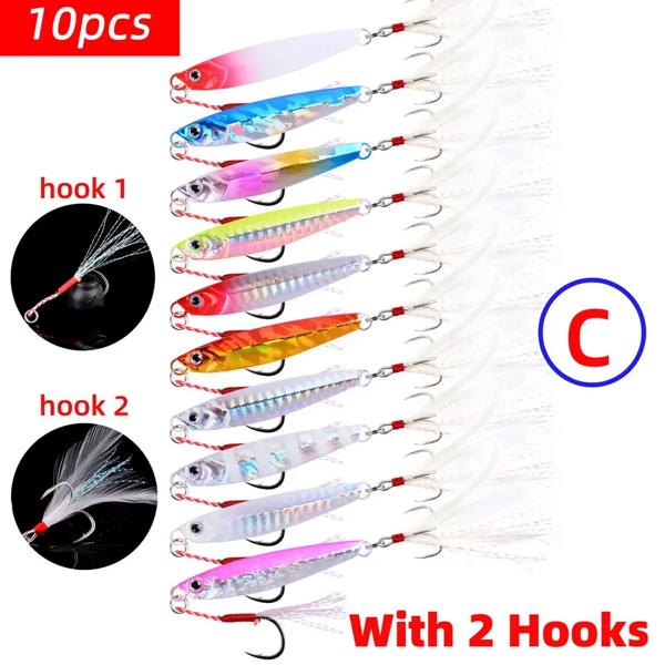 超高品質の金属製キャスティングジグ,人工餌,鋳鉄,沿岸,ジギングスプーン,7g, 10g, 14g, 21g, 28g, 40g, 10個
