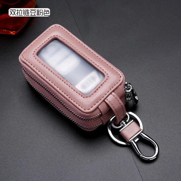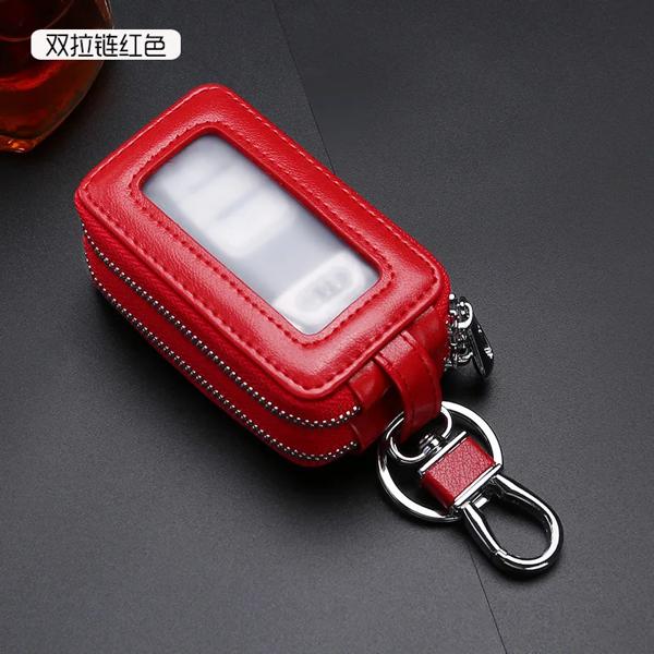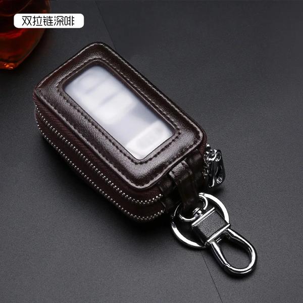 ダブルジッパー付き本革キーホルダー,多機能キーホルダー,男性と女性のための高品質のヘアリーキーホルダー