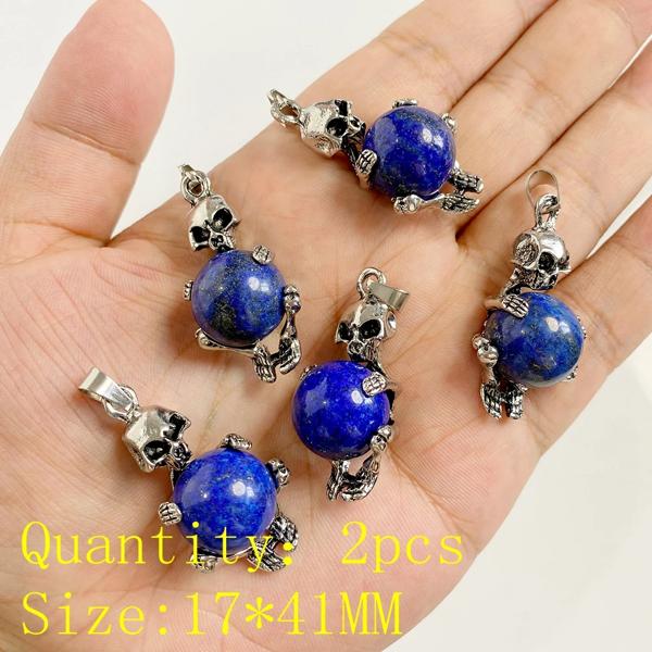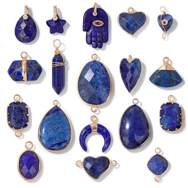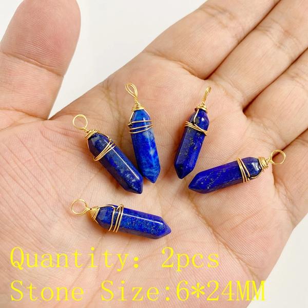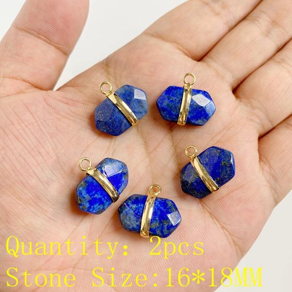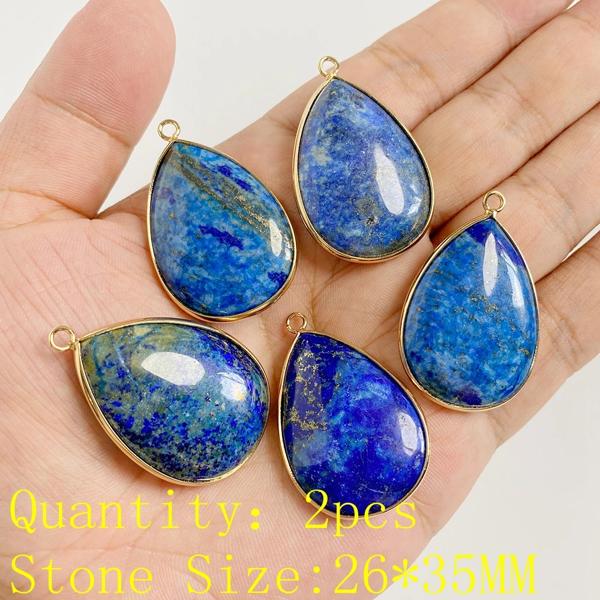 ラピスラズリ-男性と女性のための石の宝石のペンダント,天然の青いコネクタ,ジュエリー作りのアクセサリー,卸売り,2個