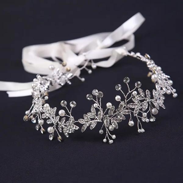 女性のための銀メッキヘアバンド、豪華なドレス、ウィンドホワイト、手作り、クリスタル、ウェディングガーランド、1個