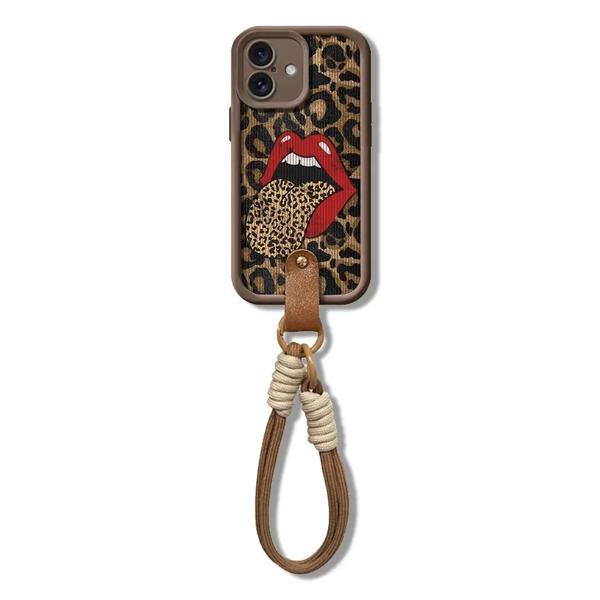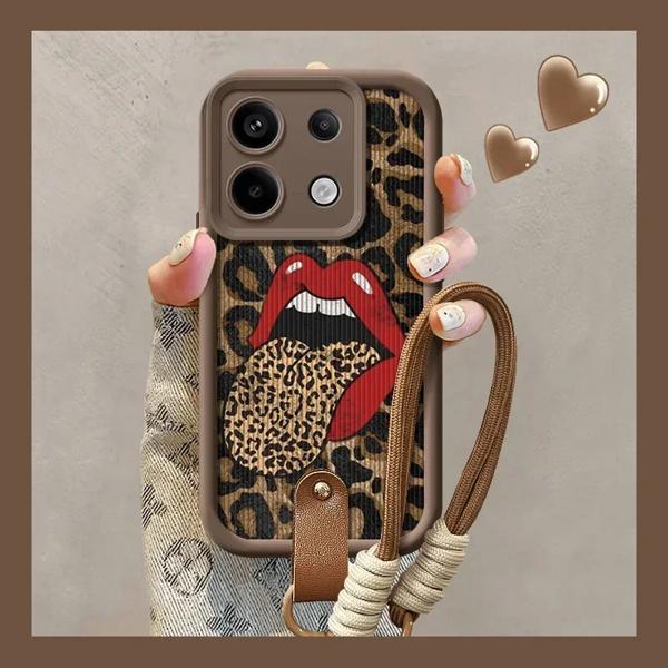 Xiaomi用ストラップ付きヒョウ柄電話ケース,赤い唇,13t,11t,12t,14t,12,poco x6,x5,x3 f3,f5,プロライト