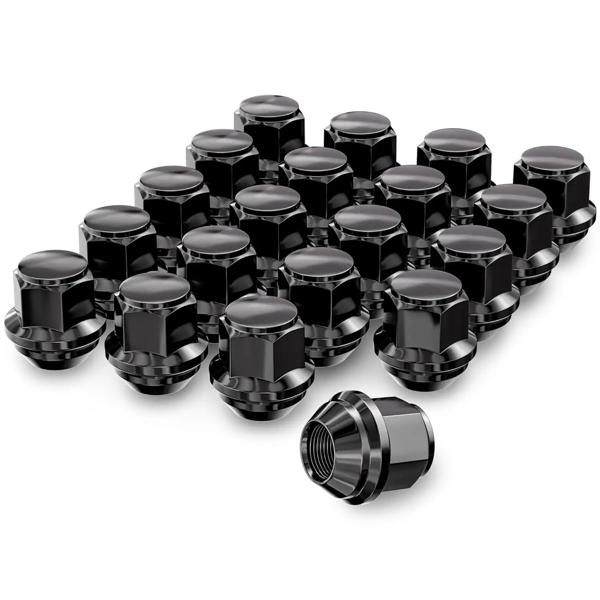 ブラッククローズドエンドバルジアコーンセットラグナット-m12x1.5スレッドスタッド-コーンシート-19mm (3/4 "六角) - 1.22" (32mm) 全体-10.9グレード