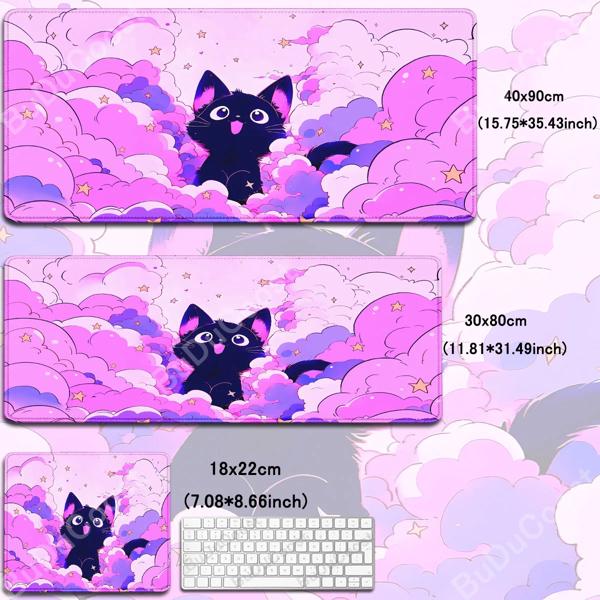 カワイイ-キーボードとデスクマット用の黒い猫のマウスパッド,ロックエッジ付きの拡張可能なマウスパッド,オフィステーブルの保護,星空,短納期,40x90cm