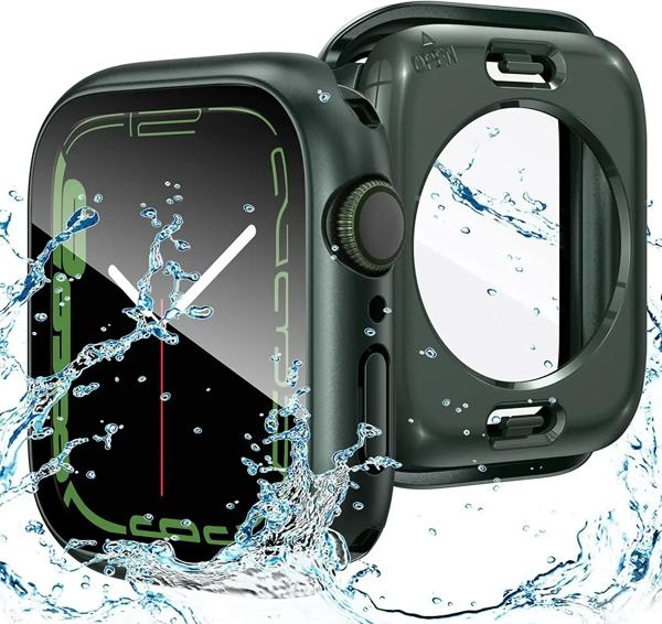 Apple Watch用強化ガラススクリーンプロテクター,防水ケース,45mm, 41mm, 44mm, 40mm,iwatchシリーズ7,8,se,6,5
