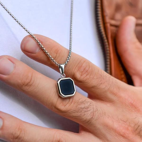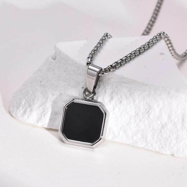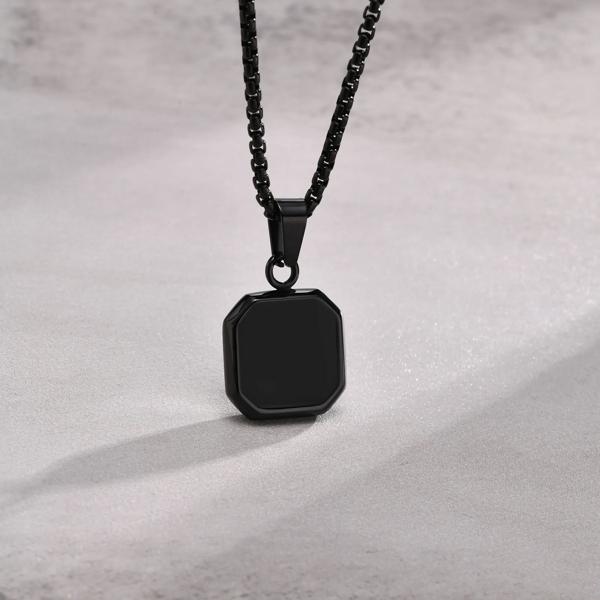 男性用ブラックエナメルペンダント付きネックレス,ステンレススチール製スクエアペンダント付き防水ジュエリー,シンプルでファッショナブル,ギフトとして贈るのに最適
