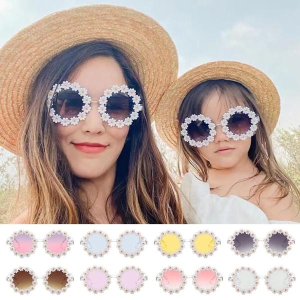 大人と子供のためのレトロなデイジーサングラス,丸いフレーム,楽しい,パーティー,フェスティバル