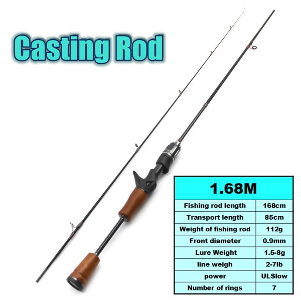スピニングまたはキャスティングロッド,1.39または1.68mのルアーに適した超軽量スピニングまたはキャスティングロッド,1.8〜8gのルアーに適した機器