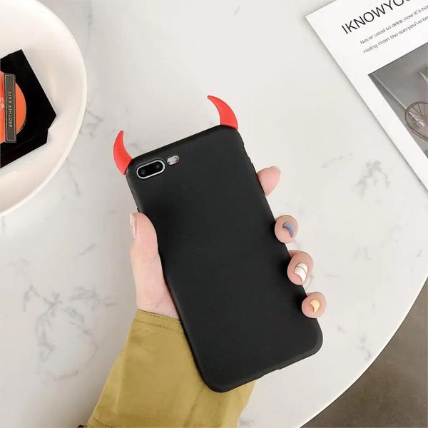 Soft Silicone Black Case Devil Horns Demon Angle Cover for iPhone 8 7 6 6s Plus X XS Max XR Fashion Phone Cases Fundas