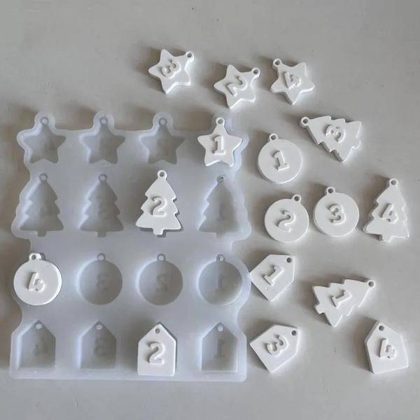 クリスマスアドベントペンダント型シリコン型、ハンギングタグ、キャスティングスター、ラウンド、ツリーハンギングプラスターモールド、番号1、2、3、4