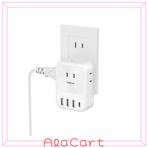 USB コンセント タップ 電源タップ USB-C付き TESSAN 3個AC口 3個type-Aと1個Type-Cポート たこあしコンセント 3口 タコ足配線 充電タッ