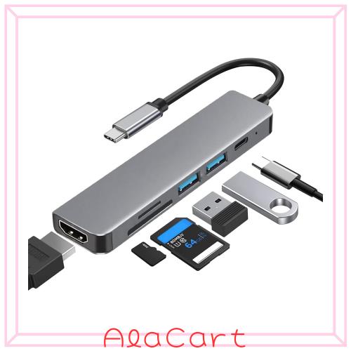 USB C ハブ アダプタ 6-in-1 HDMI Type C ハブ 「4K HDMIポート+PD 100W 急速充電+USB3.0ポート×2+SD&TFカード スロット搭載」在宅勤