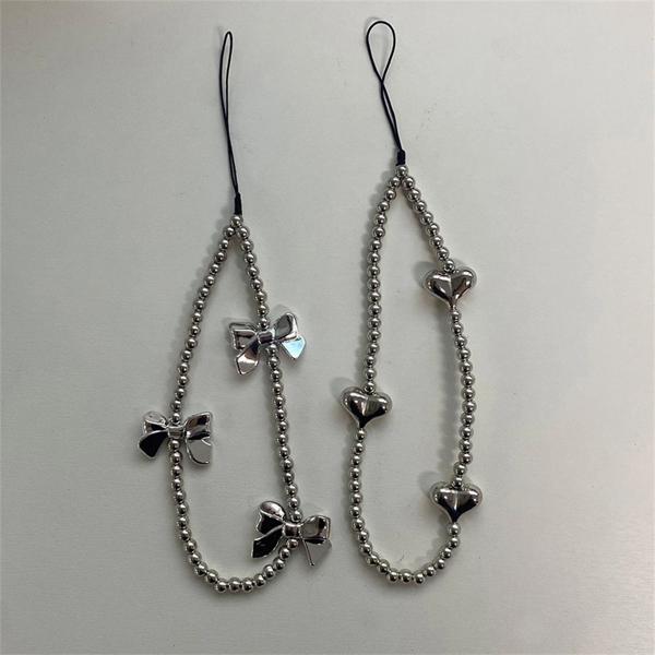 女の子のためのハートブレスレット,女の子のためのロープのペンダント,シルバー,蝶ネクタイ,電話アクセサリー