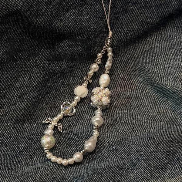 ビーズの電話とブレスレット,iPhone,ラグジュアリー,バロック,ハート,天使,パールペンダント,チェーン,ストラップ,ハンギングコード,女性用