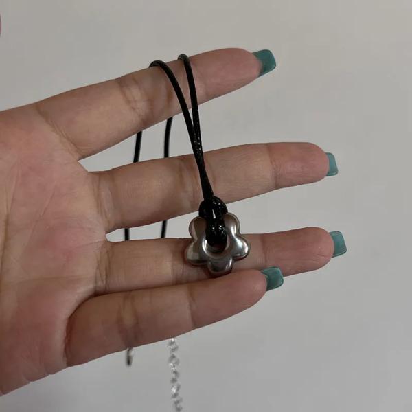 女性と男性のためのチタン鋼の星の五芒星のペンダントネックレス,黒いロープチェーン,中空チョーカー,パーティージュエリー,韓国のファッション,新しい