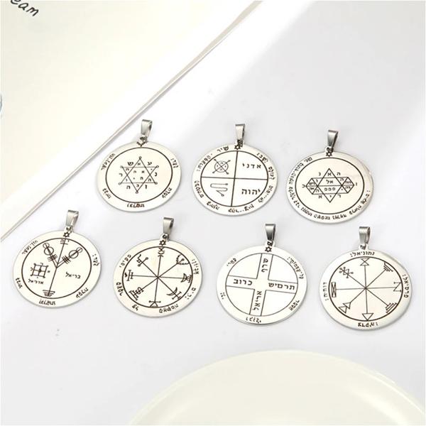 キーのソロモンペンダントネックレスステンレス鋼ジュエリーのお守り神秘月土星木星太陽金星火星水銀チャーム