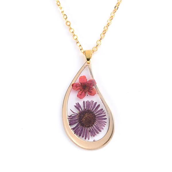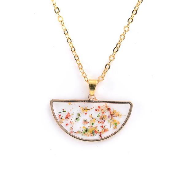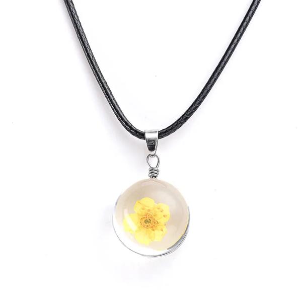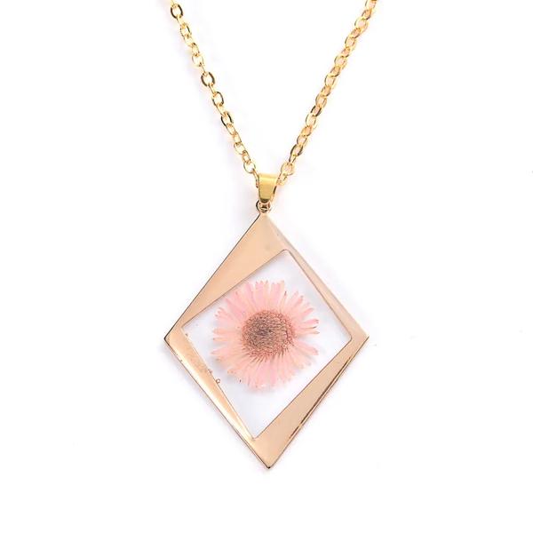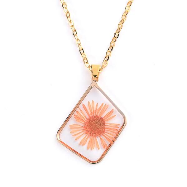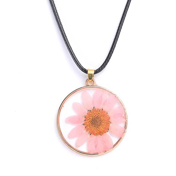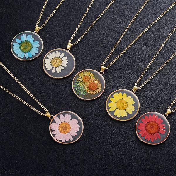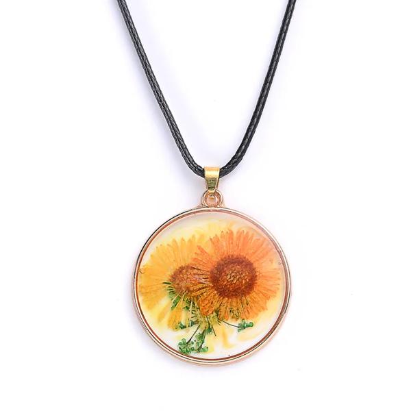 女性のためのひまわりの形をした丸いペンダント,装飾的な宝石,ドライフラワー,黄金のチェーン,お祝いの贈り物,ジュエリー