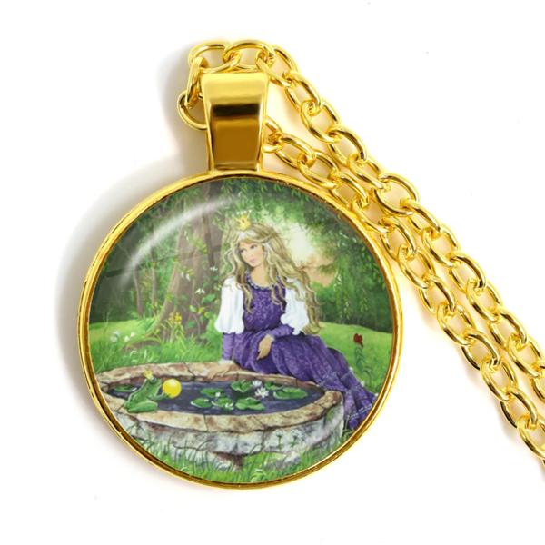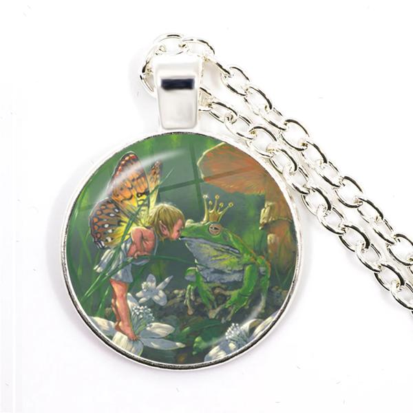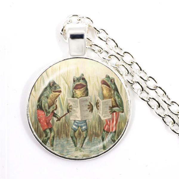 ヴィンテージカエルペンダントチェーン,新しいヴィンテージカエルフェアリーネックレス,ガラスカボション,レディースチャーム,ジュエリー