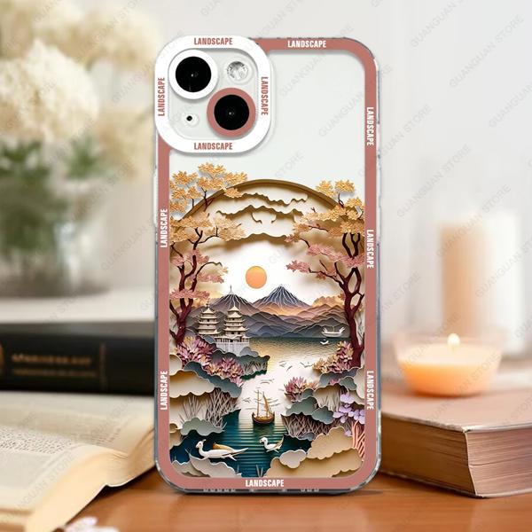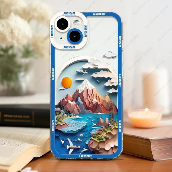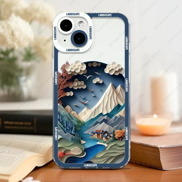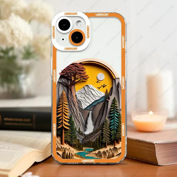 IPhone用ランドスケープソフトケース,16,15,14,13 pro max,12 mini,11,xs,x,xr,se,7,8 plus