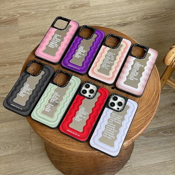 【iPhone 14/13 Inspirational Quotation (pink ripple) side word black frame mirror surface】