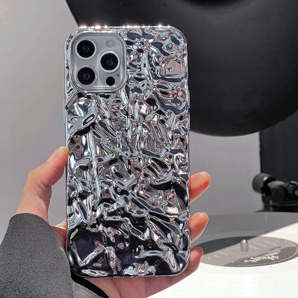 IPhone用シリコンケース,金属メッキ,プリーツ,銀メッキ,14, 13, 12, 11, 15, 16 pro max,mini,xs,xr,x 7、8プラス