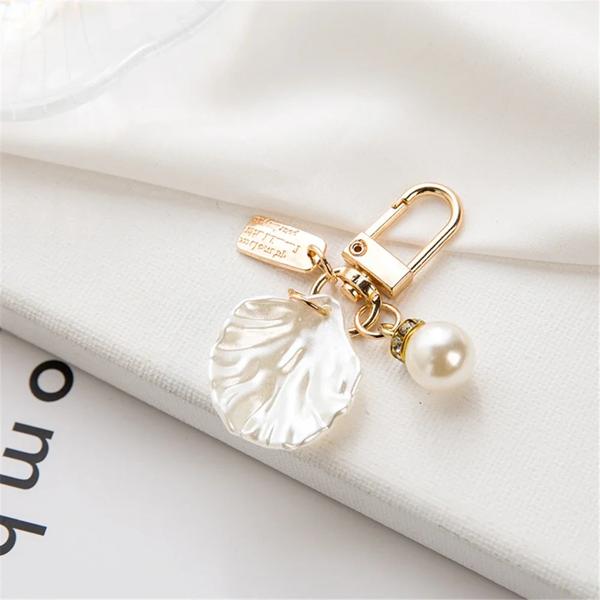 女性と女の子のためのゴールドカラーのキーリング,キーリング,ジュエリー,アクセサリー,パール,シェル,ハート,文字,かわいい,車