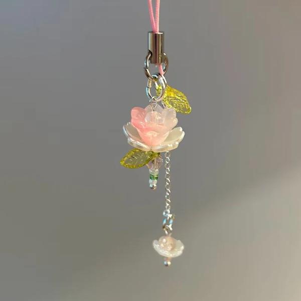 ピンクの蓮の電話チャームキーホルダー、手作りのアクセサリー