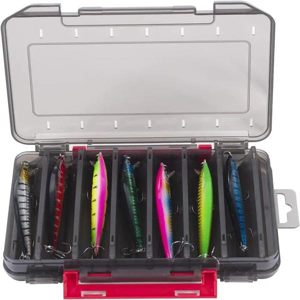 14コンパートメント-大型の釣り道具箱,餌用の両面フック,コンテナ,プラスチック製の収納ケース,マルチグリッターボックス
