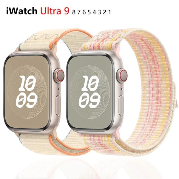 Apple Watch用ナイロンスポーツストラップ,iwatch用バンドストラップ8, 7,6,5,4,3,se,40mm, 44mm, 42mm, 49mm,シリーズ9ウルトラ2、1、41mm、45mm