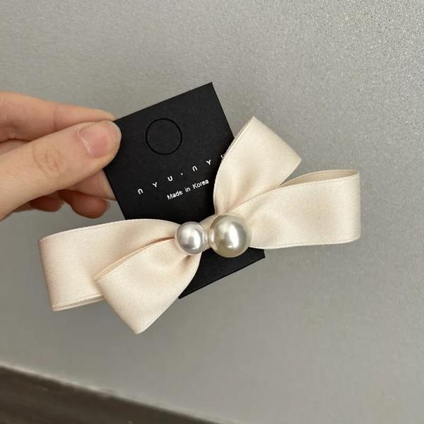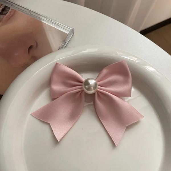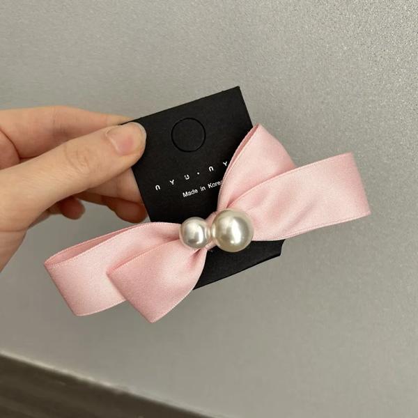 女の子のためのヴィンテージ蝶ネクタイヘアクリップ,フレンチバレッタ,人工真珠,サテンシルク,ヘアアクセサリー