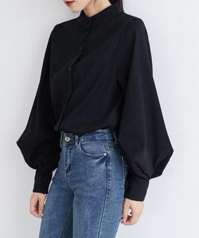 襟元がすっきりとしていて、着回し力抜群のスタンドカラーシャツ