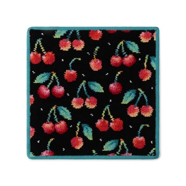 みずみずしいチェリーが並ぶ「チェリードット」のハンカチです。小さなドットもちりばめて、かわいらしい表情に仕上げました。シュニール織ならではの優しい風合いも魅力の理由。ベースとチェリーとのメリハリのあるカラーリングも目を引きます。
