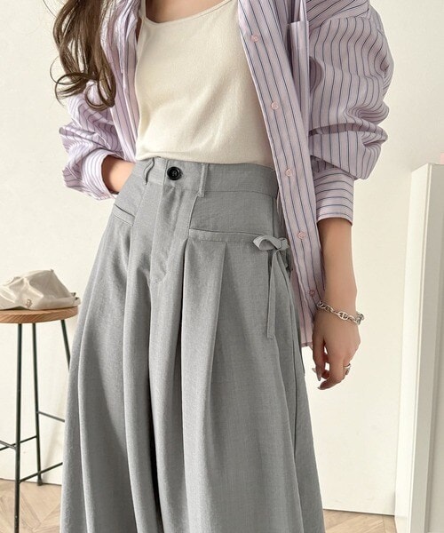 クラシカルエルフ(Classical Elf)/動くたび軽やか上品シルエット。サイドリボン付き3タックハイウエストワイドパンツ