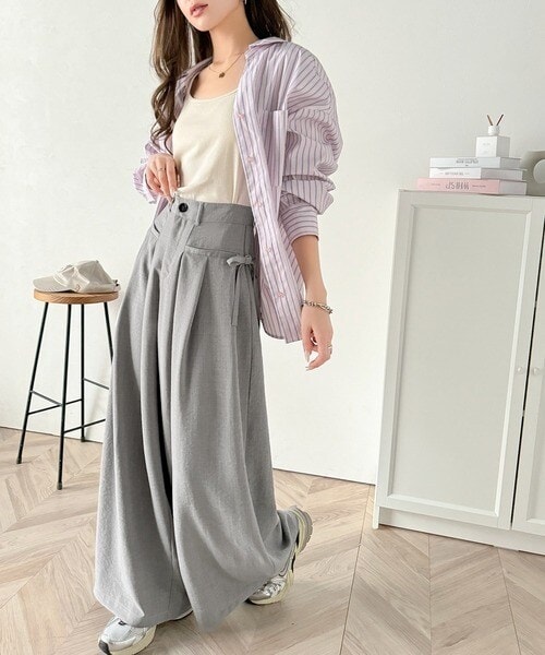 サイドリボン付き3タックワイドパンツの登場。