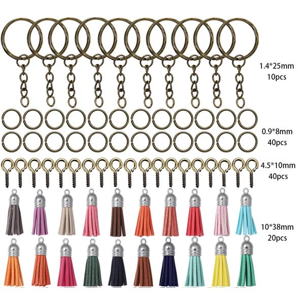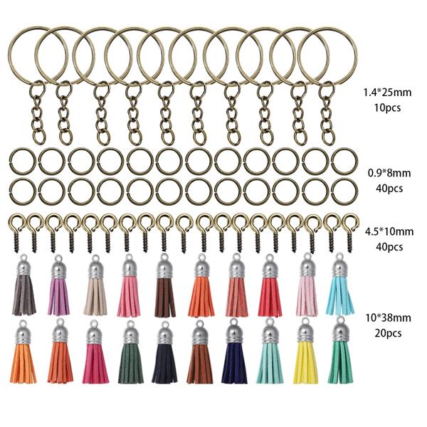 ジュエリー作成キット,110個,樹脂ペンダント付きキーホルダー,さまざまな色のタッセル
