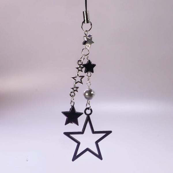 Y2kメタルペンダントブラックスターペンダント、電話チャームストラップ、甘いクールな女の子ペンダント、携帯電話ストラップ、iPhone用キーホルダー
