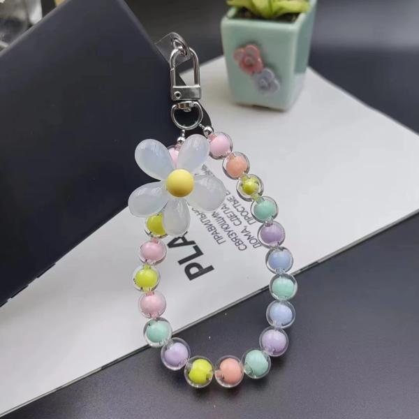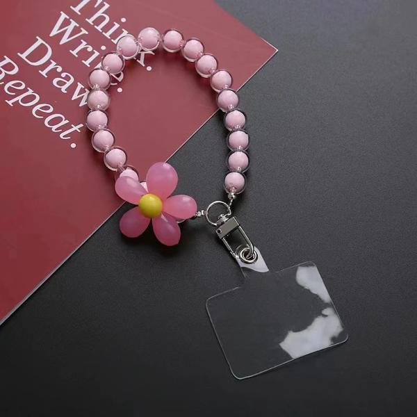 マルチット-電話、手作りの花、カラフルなビーズ、手首のロープ、女性と女の子のためのストラップブレスレット用の紫色のリストストラップ、女性
